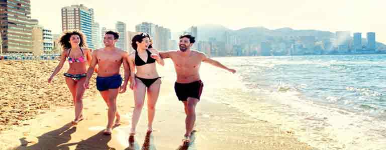 Una arena fina y dorada, unas aguas transparentes y unas playas que presentan un aspecto limpio y cuidado todo el año son los signos de identidad de la fachada marítima de Benidorm.